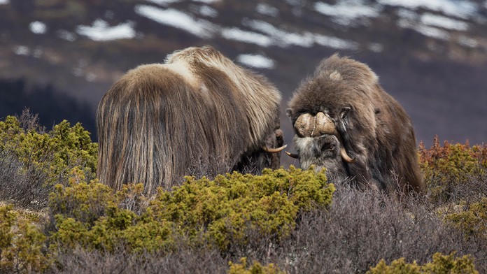 Rentier, Blaukehlchen, Vielfraß, ELCH, Kranich, Fuchs, sehr seltene Sperbereule) Moschusochsen – Norwegen Dovrefell. Der geringen Bevölkerungsdichte und den maßvollen kulturellen und industriellen Eingriffen in der Natur ist es allerdings zu verdanken, das die Vielfalt der Tierwelt in Schweden größer ist und vielfach noch Tiere vorkommen, die in Mitteleuropa längst ausgestorben oder weitgehend verdrängt worden sind.